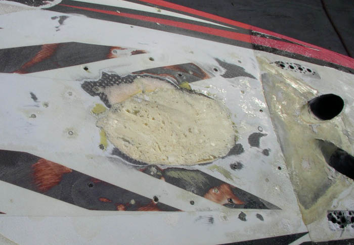 Job #4705 soft deck mess that someone had earlier injected Epoxy into - not helpful!