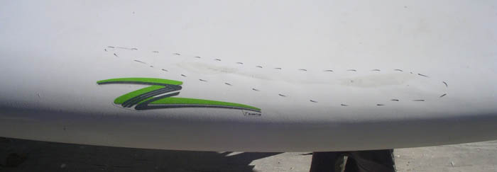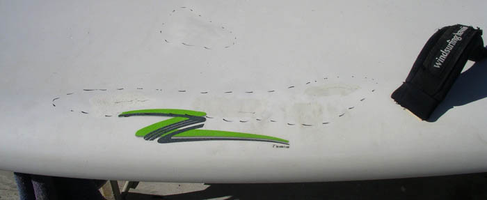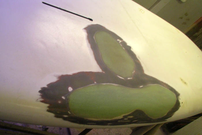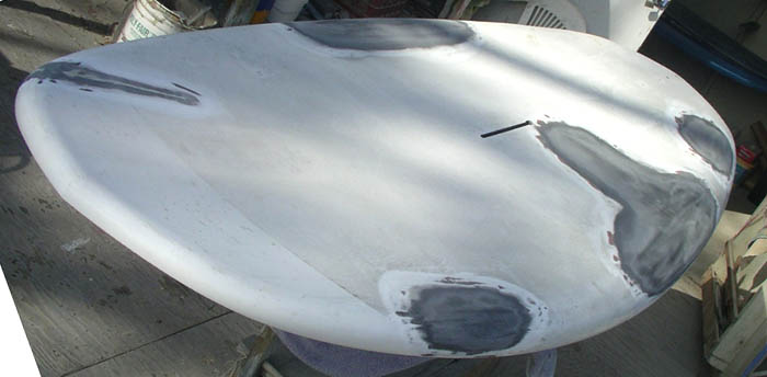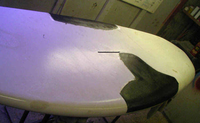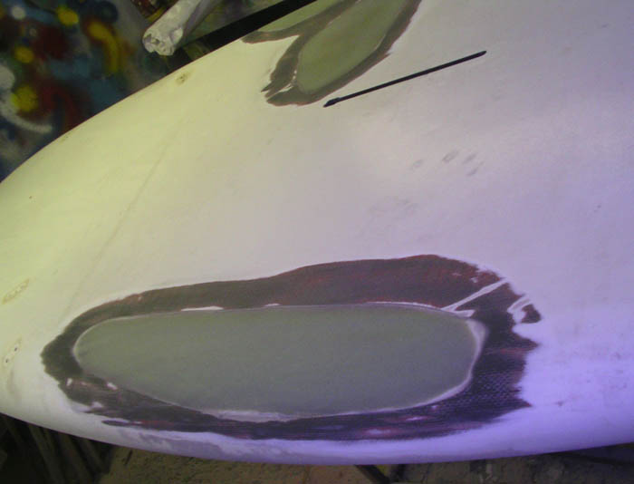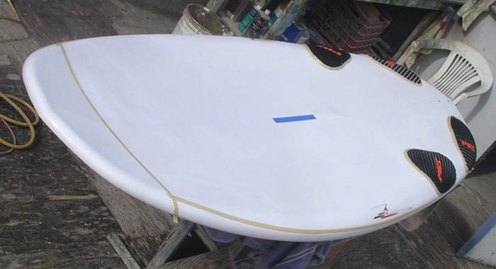 new LP color coat on, padz reinstalled, taped off for non-skid