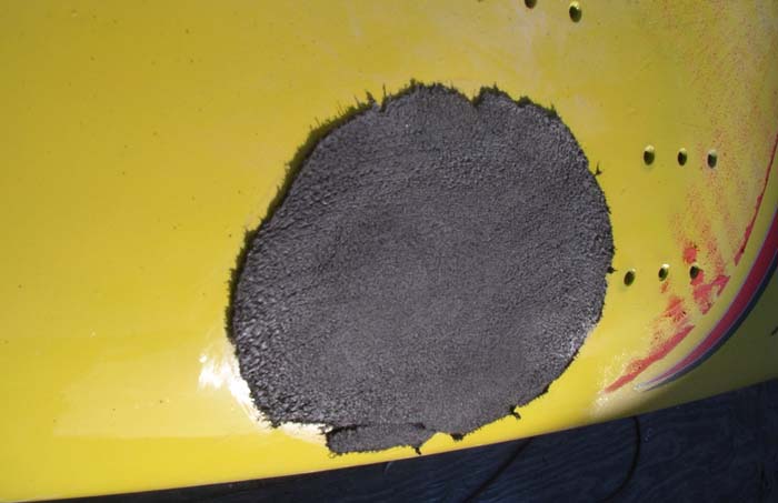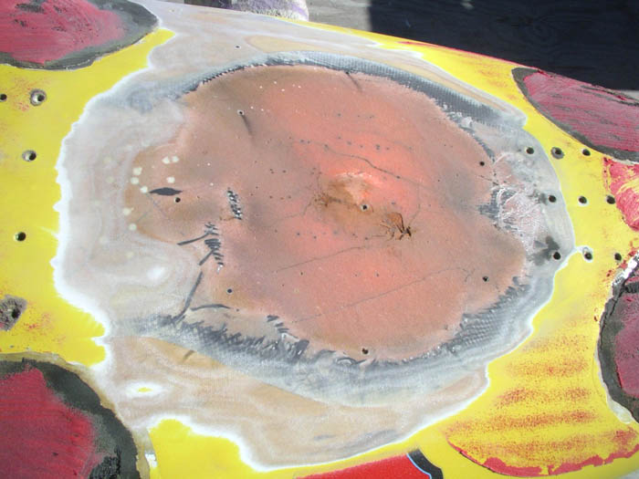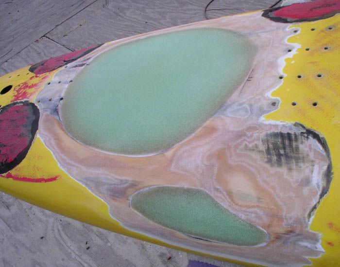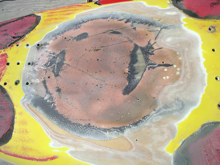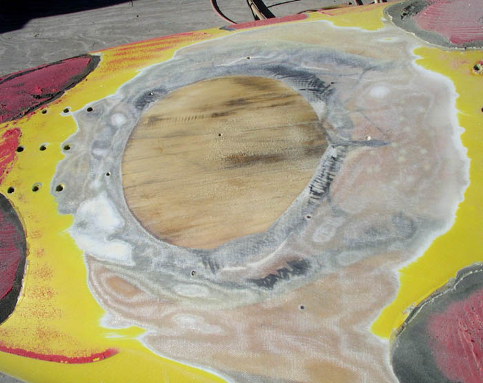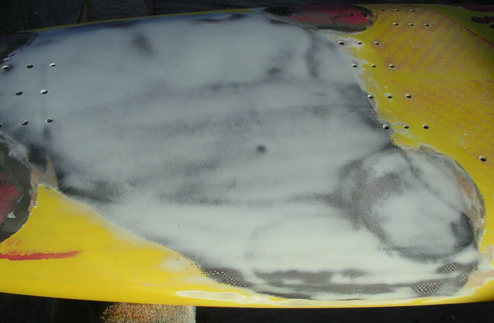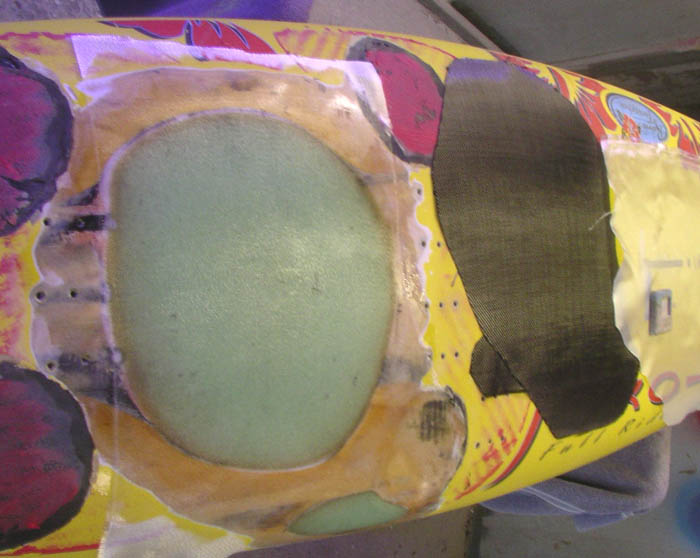 patch, reveal totally fractured sheet foam beneath |