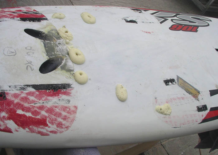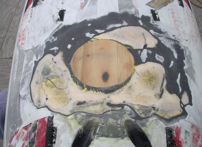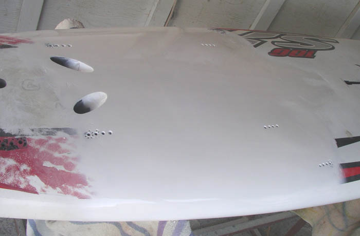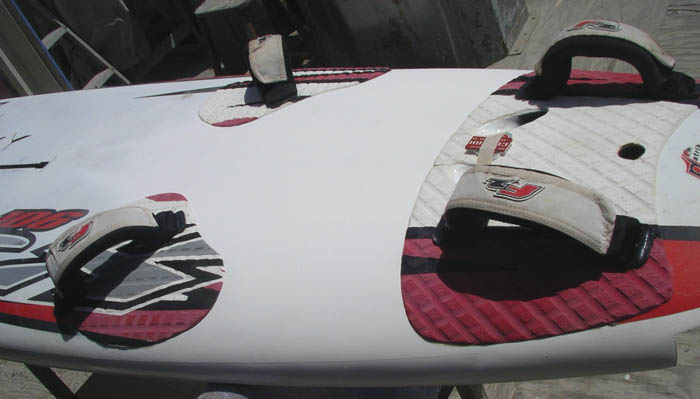 laminated. Just after passing with a squeegee, the foot strap insert holes