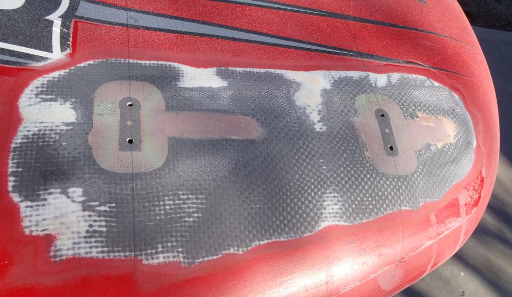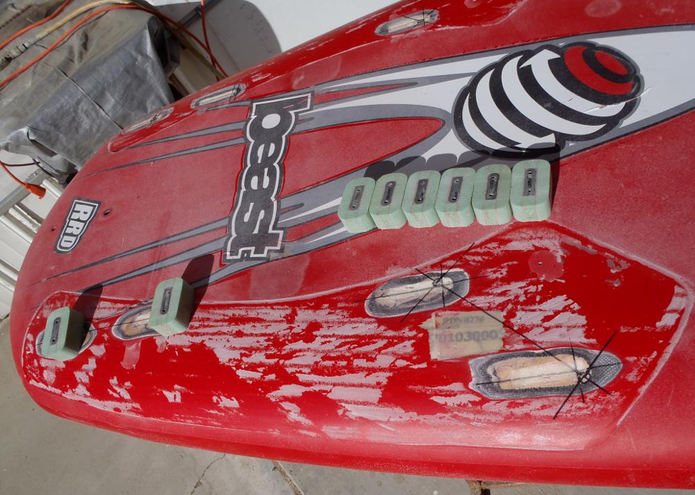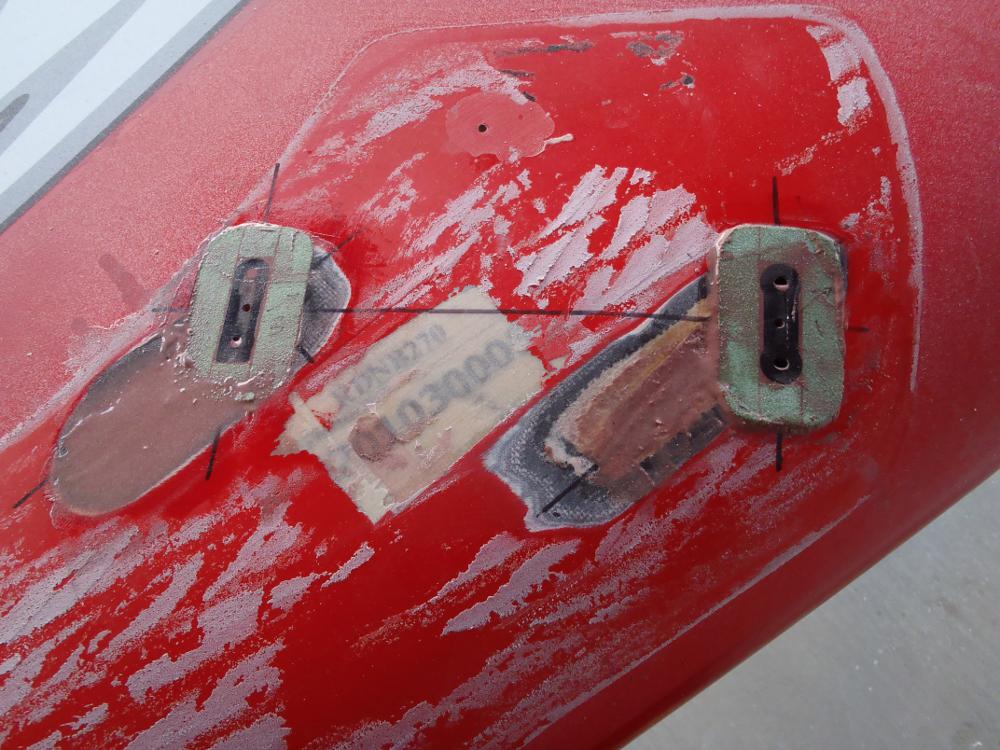 new reinforcements feathered out, pilot holes drilled