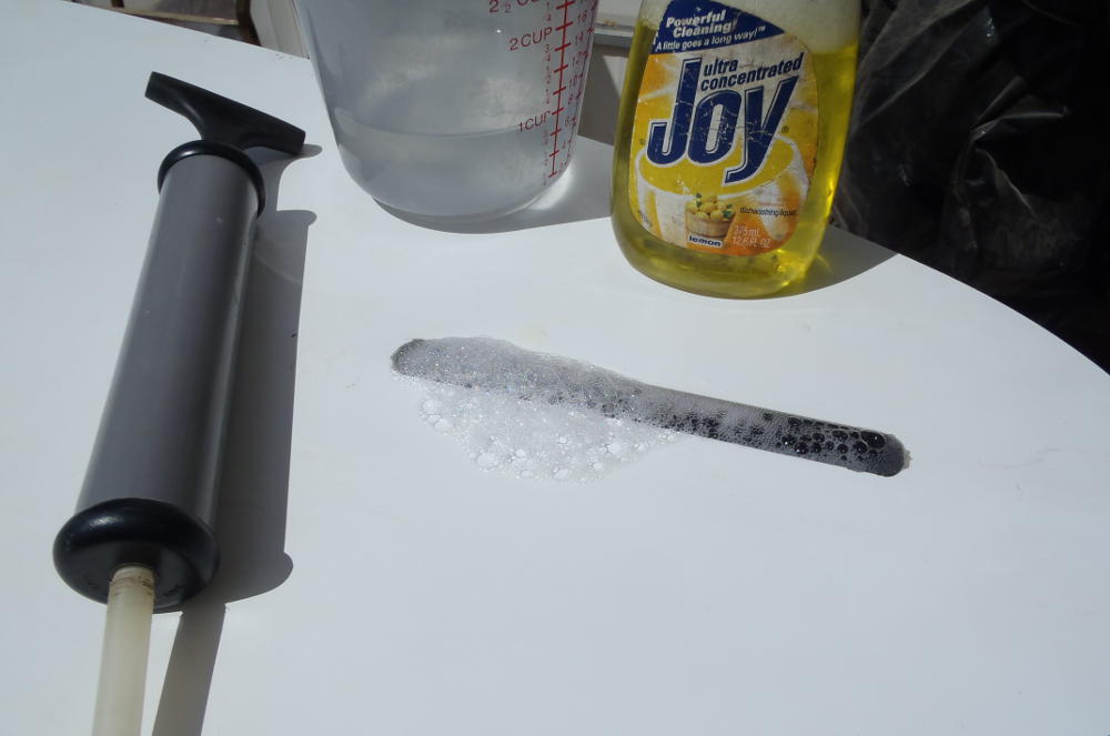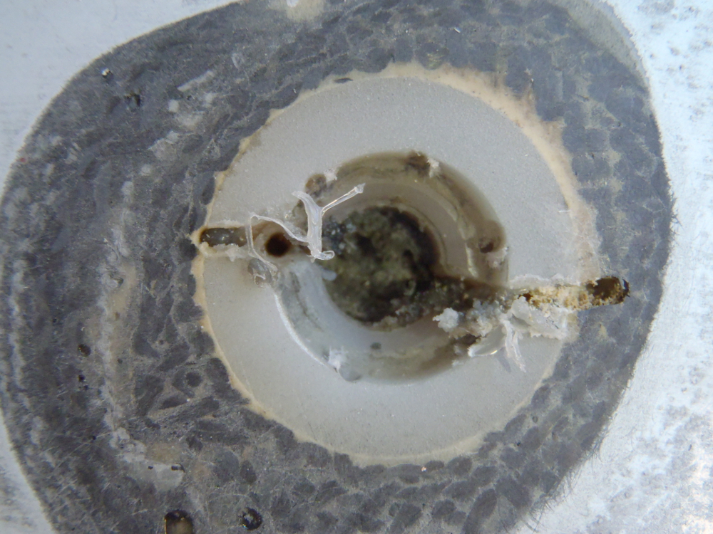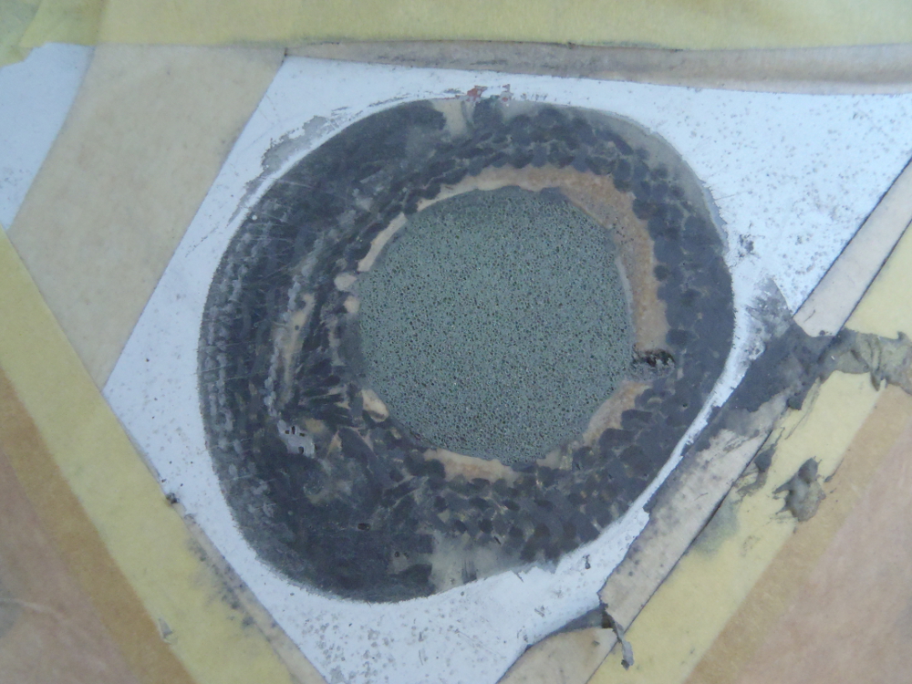 fin box and bottom skin; Goretex vent is found punctured and leaking |