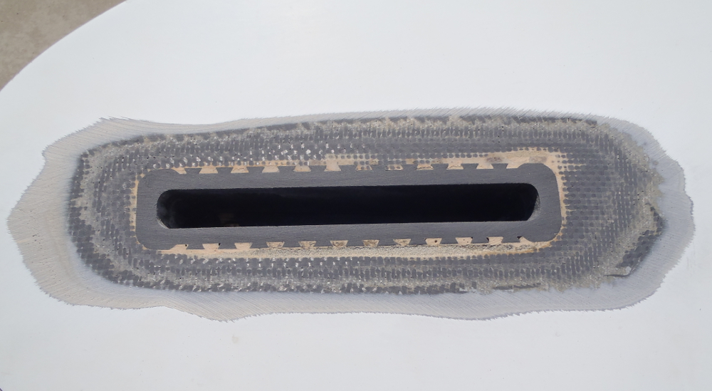 faired, primed, LP topcoat and non-skid DeckDust applied |