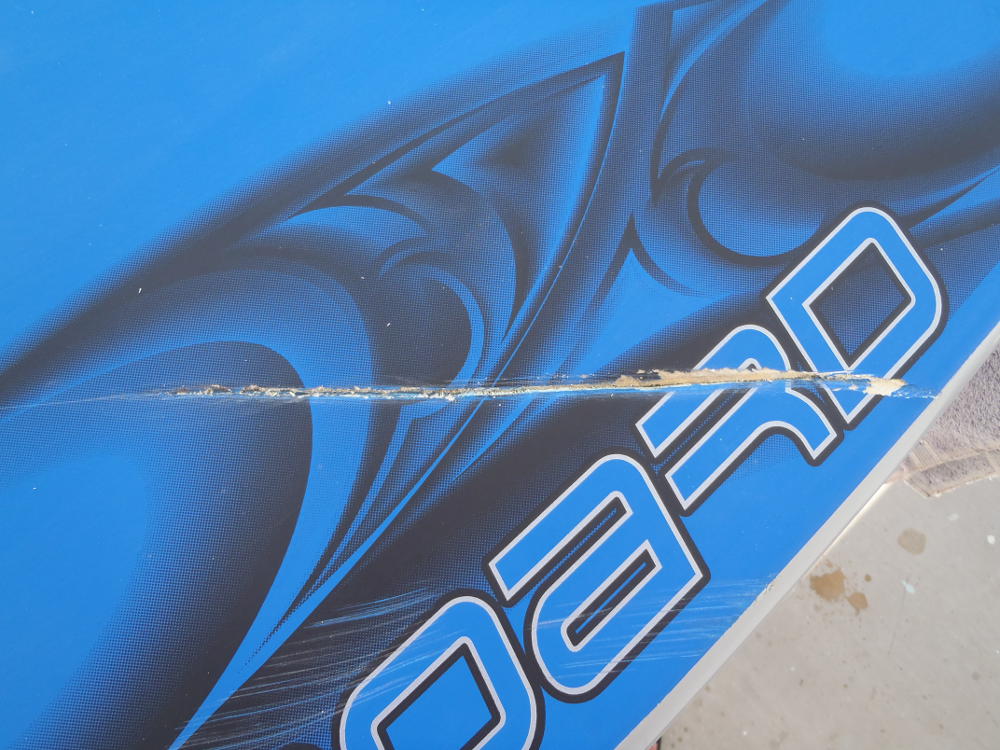 another victim of the low lake level - we believe the jagged, rusted remnant of an old navigation buoy did this