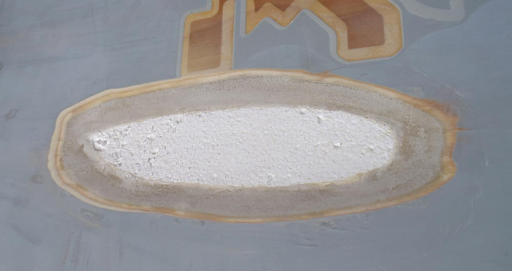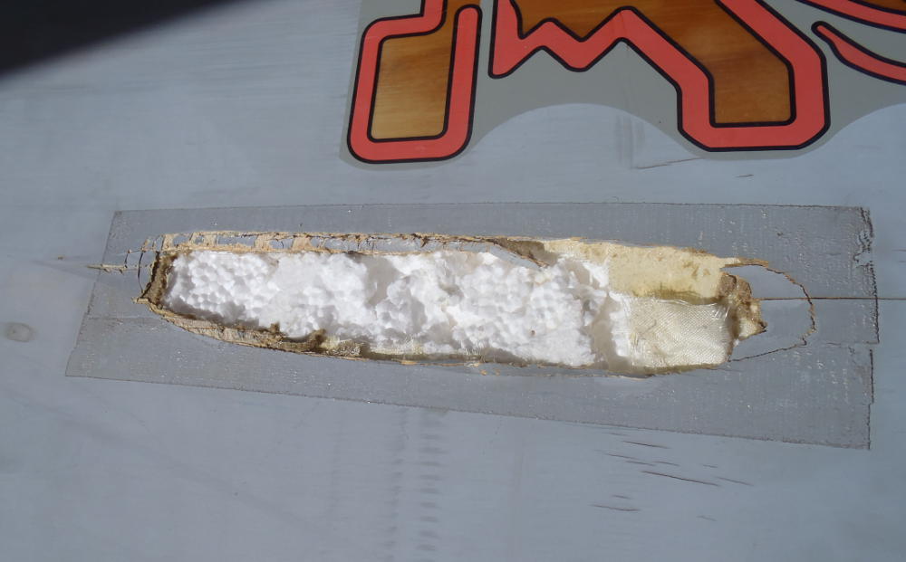 Divinny & veneer bevelled, next for the EPS core restoration (inject Urethane, cap with 1/2" EPS "lid")