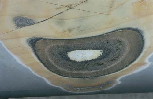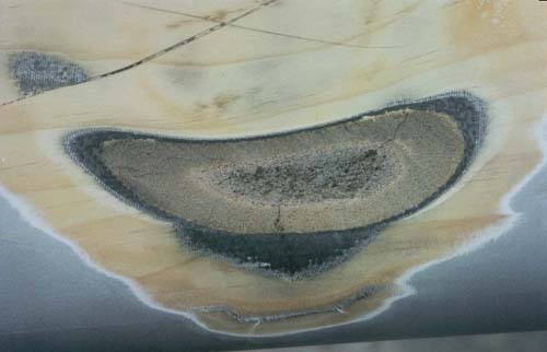 panel stiffness (the veneer's major function). The sand-through at 8:30 is