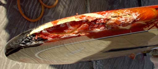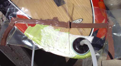 removed, core faired & glassed, new bottom veneer being vacuum-bagged |