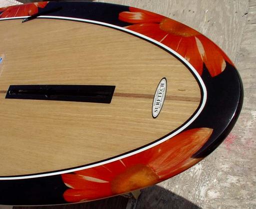 sanding-coated, design painted with Acrylic paints |