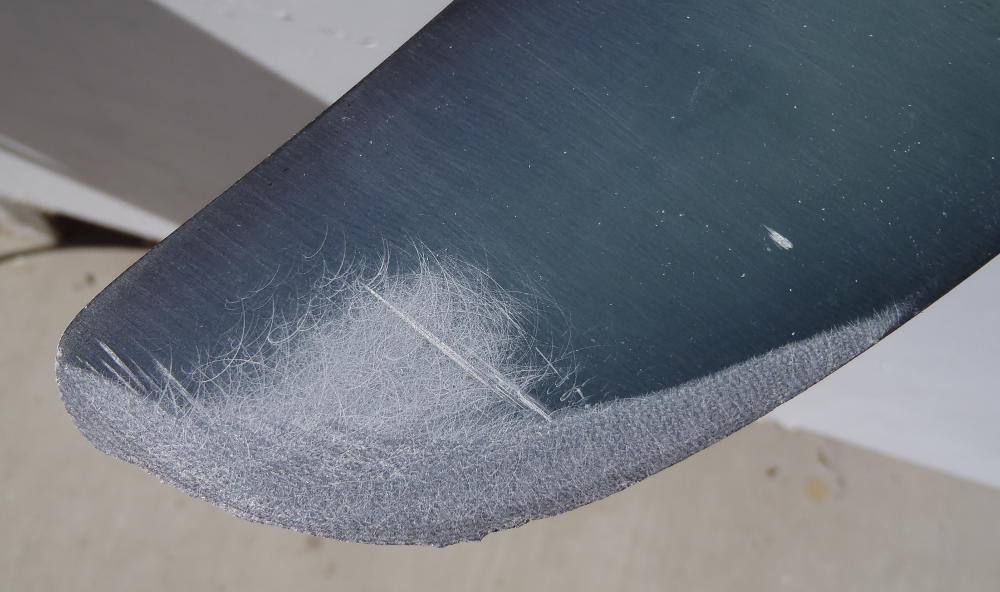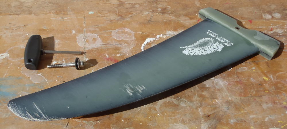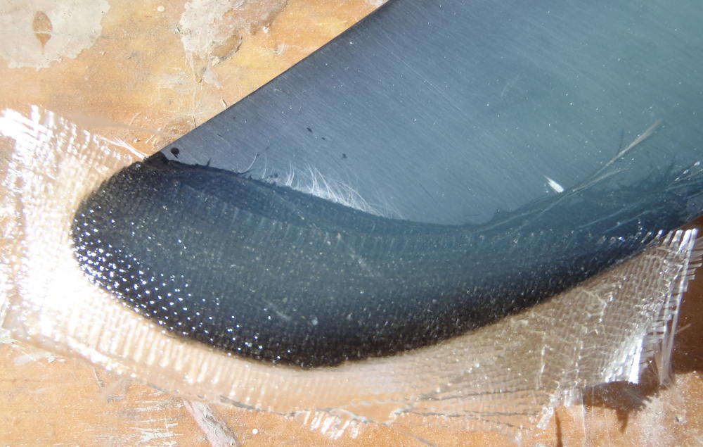 side cured, tidied up some; turn fin over, bevel-grind other side, new