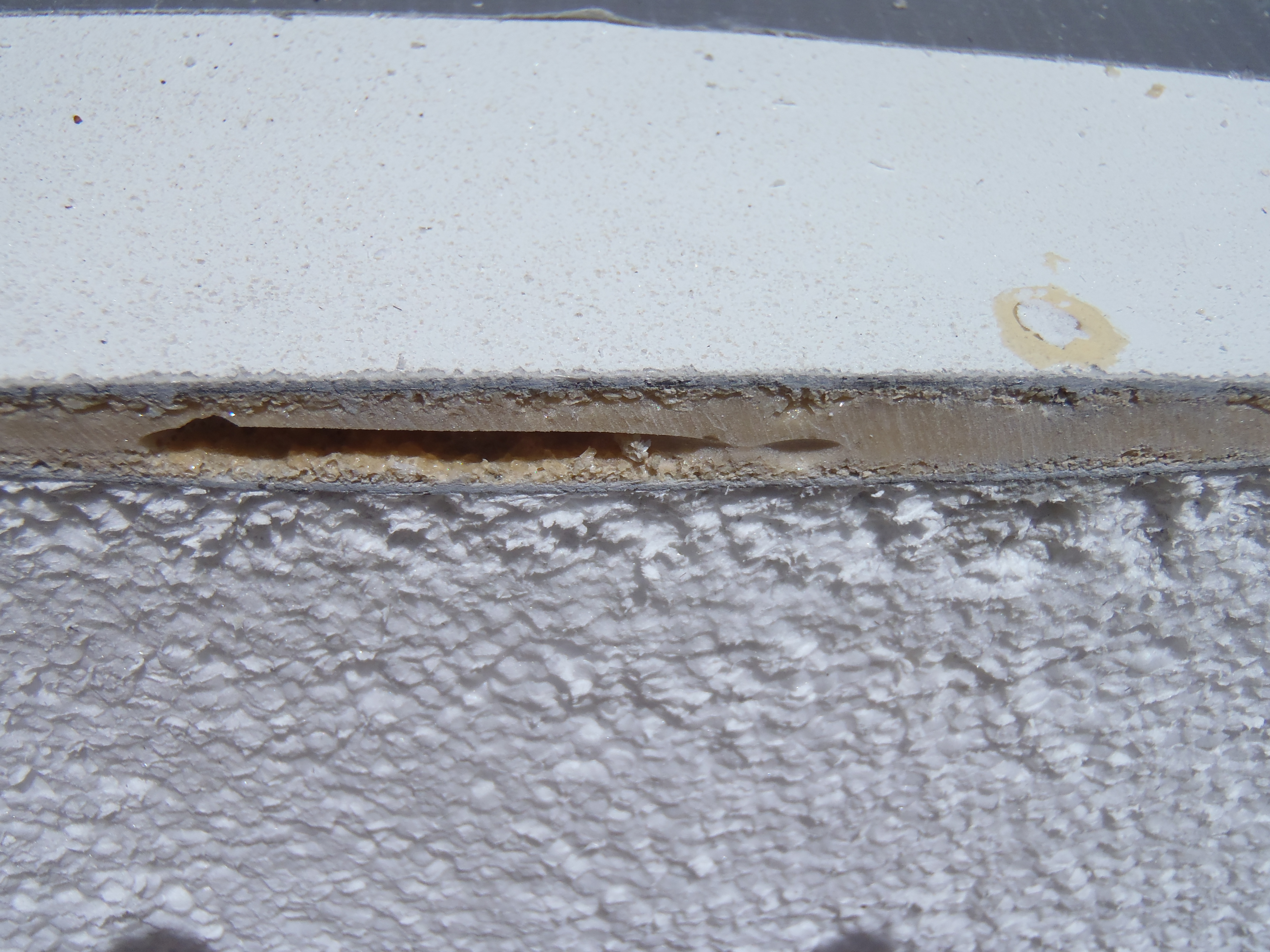 disintegrated EPS foam, often closely followed by failed PVC sheet foam