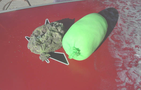 stuffed green stocking-type material. Instead of Kerosene or other solvents that