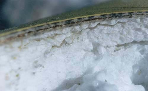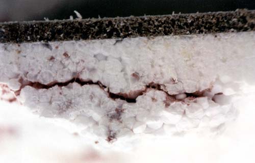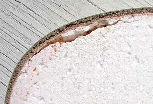 deck disease: outer fiberglass, Divinycell, and inner glass are intact.